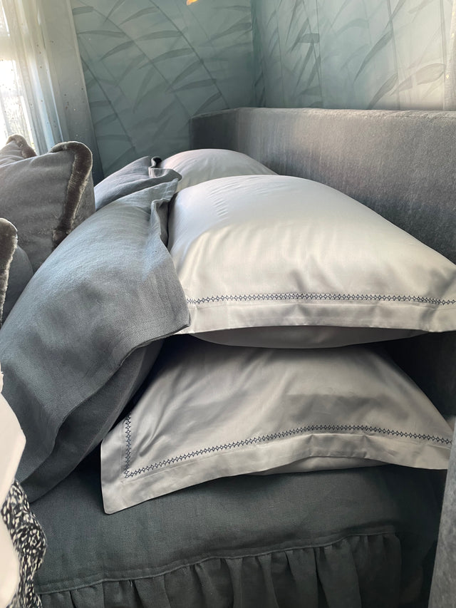 Our fabrics are woven in Italy by multi-generational mills. Our linens are sewn in Italy and in our Sonoma atelier by artisans who take pride in what their hands produce. Made to order in 4 to 6 weeks with tailored sizing, color, and embroidery.
