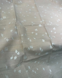 Leaves design screen-printed in Pearl ink on a Light Taupe hand-marbleized Linen