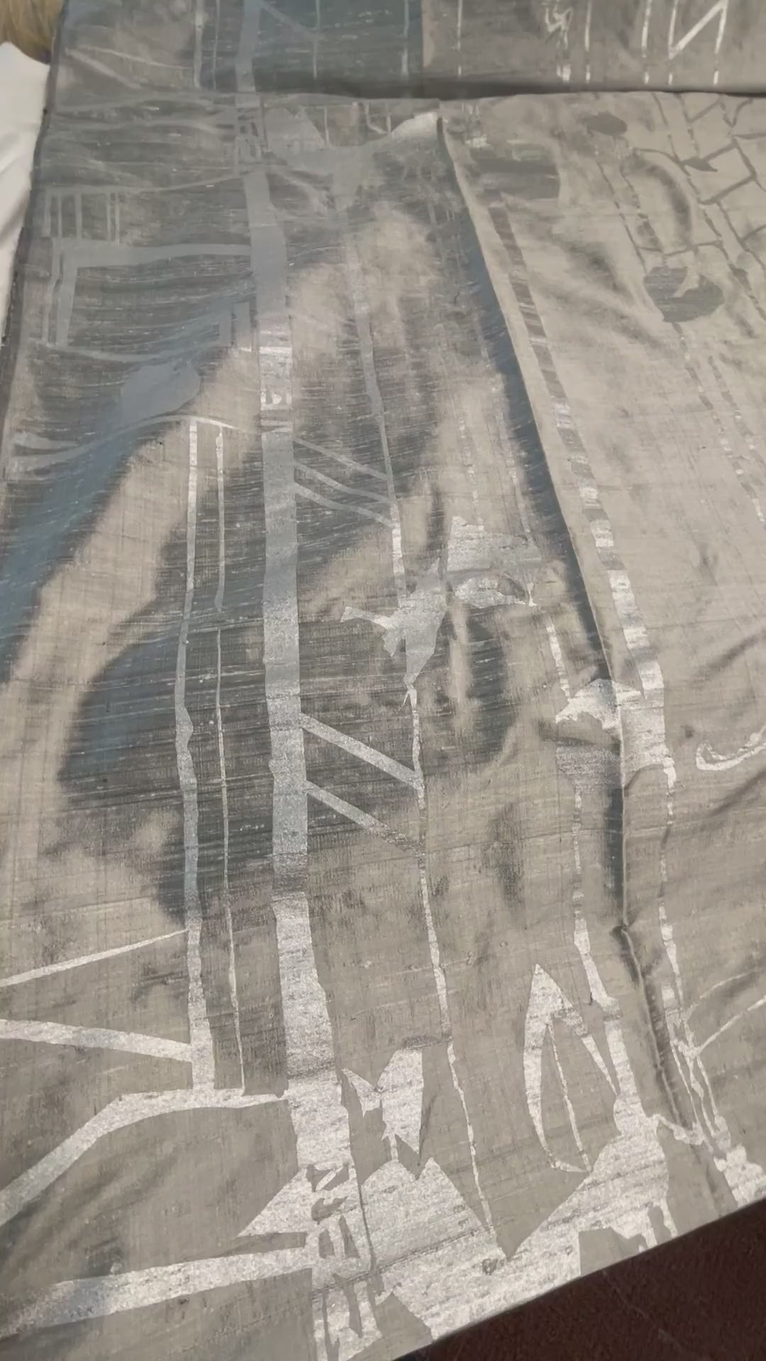 Trelliage design screen-printed in Silver on Silver Silk Dupioni