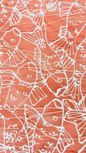 Batik Baby Ginza design screen-printed on hand-marbleized Peach Cotton Sateen
