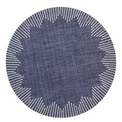 The distinctive Dream Weaver placemat is ideal for summer entertaining. This round placemat showcases exquisite cord stitching, which elegantly contrasts the fabric base. The stitching forms a chevron-like border, creating a unique pattern on the faux-woven look. This woven placemat adds a touch of easy sophistication to your dining table, making it the perfect choice for warm-evening gatherings.