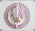 The round Portofino Placemat in lilac allows for easy outdoor entertaining while capturing the heathered texture of the traditional cross-dye cloth application. This woven placemat has the look and feel of raffia yet is easily cleaned. Offered in two pastel colors (natural and lilac), this round placemat is a summertime entertaining staple.