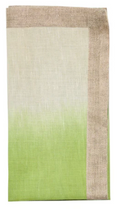 The Dip Dye napkin features a soft ombré transition that adds subtle refinement to the linen. The understated palette makes these dinner napkins suitable throughout the year. Each piece is hand dipped and dyed and finished with a delicate metallic foil border. This bestselling design is available in a range of color variations.