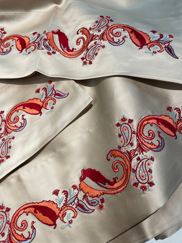 For clients seeking one-of-a-kind heirlooms, Kearsley Couture provides an unparalleled bespoke experience. Collaborate with Heather Kearsley Wolf to create linens with custom details, embroidery, and weaves crafted by artisans in Italy, Belgium, Scotland, and the United States. Allow 6–36 months for completion.